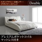 ダブルベッド 高級レザーベッド ホワイト 白 デザイナーズベッド プレミアムポケットコイルマットレス付き ベッド ダブル レザーベッド