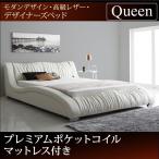 クイーンベッド 高級レザーベッド ホワイト 白 デザイナーズベッド レザーベッド 大型ベッド クイーン プレミアムポケットコイルマットレス付き