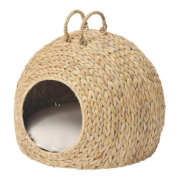 猫ベッド ヒヤシンス ちぐら ドーム 天然素材 ( ペット用バスケット ペットベッド ペットハウス 犬用 猫用 ペット用 クッション付き コンパクト おしゃれ ベッド ハウス バスケット キャットハウス ドッグハウス 持ち手付 ドーム型 )