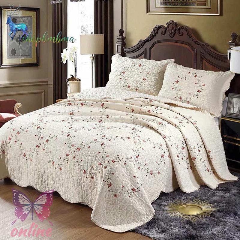 ベッドカバー おしゃれ 3点セット ケイーン キング用 ベッドスプレッド キルト 綿100% ソファカバー マルチカバー 姫系 花柄 刺〓 寝具カバー四節適用