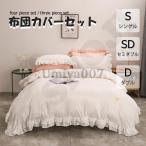 爆買 フリル付き 布団カバー3点セット可愛い ベッド用 布団用 ボックスシーツ 洋式・和式兼用 寝具カバーセット 掛け布団カバー シングル150×210cm