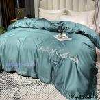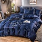 ベッドカバー ダブル 4点セット シルクみたい素材 ボックスシーツ ツルツル 掛布団カバー ひんやり 枕カバー 刺繍 優しい肌触り オールシーズン