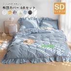 フリル付き 布団カバー4点セット可愛い ベッド用 布団用 ボックスシーツ 洋式・和式兼用 寝具カバーセット 掛け布団カバー セミダブル 190×210cm