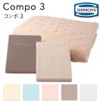 シモンズコンポ3 WOOL BASIC 3 シングル用(ボックスシーツ2枚+羊毛ベッドパッドセット)100×200×45cm LA1006 (カスタム・エグゼクティブ・6.5ピロートップ…