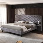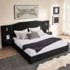 【並行輸入品】VYNELITO キングサイズベッドフレーム 特大ヘッドボードプラットフォームフレーム 高級ベッドフレーム LEDライトとナイトス