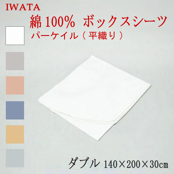 イワタ 綿100% パーケイル 平織り ボックスシーツ ベッド用 ダブル 140×200×30cm (E-VS-00370) 日本製 国産 ベッドシーツ ベッド用シーツ マットレスカバー 綿100% IWATA 岩田 正規品 天然繊維 コットン 吸湿 発散 放湿 上品 上質 iwata