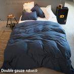 布団カバー 4点セット 二重ガーゼ 綿100% ダブル ワイドダブル キング クイーン ベッド用 布団カバーセット 掛け布団カバー フラットシーツ ボックスシーツ 枕カ
