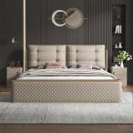 【並行輸入品】HONGYISHI モダンライト ラグジュアリー レザーベッド モダン キングサイズ 布張りプラットフォーム ベッドフレーム 収納