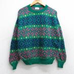 L/古着 ベネトン 長袖 セーター メンズ 80s 雪柄 モヘア クルーネック 緑他 グリーン 25oct04 中古 ニット トップス