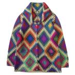 美品 ROYAL ALPACA ロイヤルアルパカ ベビーアルパカ ニット ジャケット ブルゾン コート ショールカラー 総柄 サイズL マルチ レディース 古着 中古