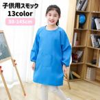 スモック キッズ ベビー 赤ちゃん 子供 男の子 女の子 割烹着 エプロン 長袖 袖ゴム ポケット 汚れ防止 防水 シンプル お絵かき お食事