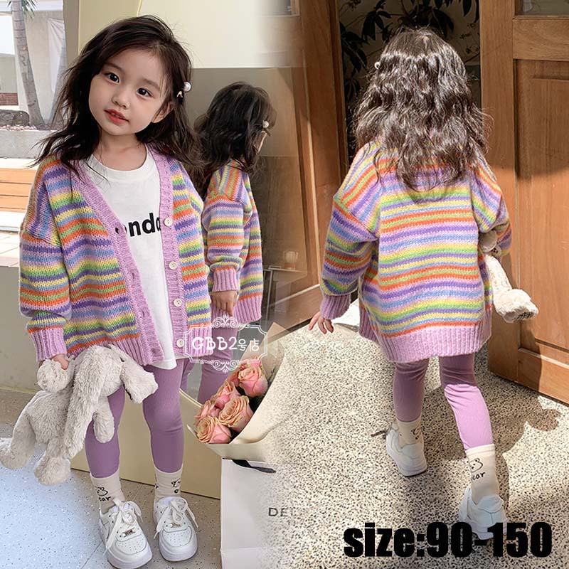 韓国子供服 セットアップ 女の子 セーター+ズボン レギンス キッズ ニット カーディガン ストライプ 子供服 ベビー服 上下セット 長袖 春秋 入園 おしゃれ ニットトップス 子ども服 カジュアル お出かけ 可愛い ジュニア服 通学 90 100 110 120 130 140 150cm