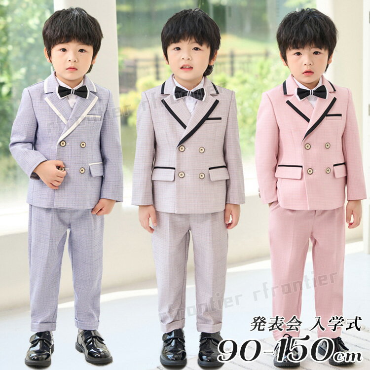 ピアノ発表会 卒業式 スーツ 男の子 卒業式 パンツスーツ キッズ フォーマル ストライプ ブレザー セット 卒服 入学式 4点 5点セット 子供スーツ ベビースーツ 卒園式 入園式 長袖 ズボン シャツ ベスト ジャケット リボン ピンク 灰 韓国 結婚式 小学生 撮影 80-150