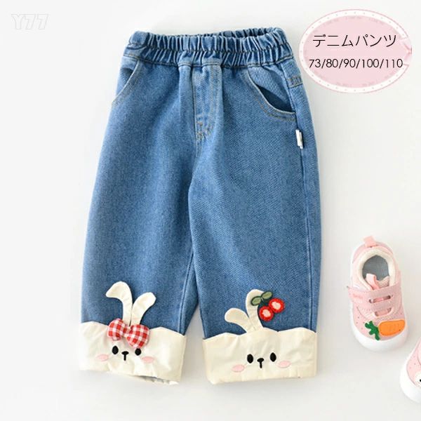 【コスパ最高!2%OFFクーポン 11/14まで】韓国子供服 女の子 デニムパンツ 73/80/90/100/110 長ズボン かわいい ウサギ デニムパンツ キッズ ジーンズ 春着 秋着 通園着 通学着 キッズパンツ 子供パンツ おしゃれ ストレートパンツ プレゼント スウィート