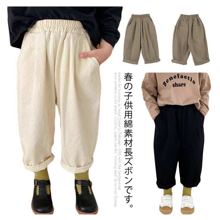 長ズボン キッズ ロングパンツ 男の子 ボトムス 女の子 ストレートパンツ 子供服 カジュアルパンツ ベビー ウエストゴム ゆったり 無地 コットン