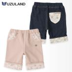 ガールズ ハーフパンツ 5分丈 ニットデニム 花柄 裾折り返し 半ズボン 女の子 UZULAND ウズランド キッズ ベビー 短パン
