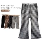 ロングパンツ フレアパンツ 子供 キッズ ベビー 女の子 ベルボトム ボトムス 無地 リブ ドット柄 チェック柄 カジュアル 長ズボン ラッパズボン
