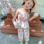 セットアップ 上下 2点セット キッズ ベビー ジュニア 子供 女の子 ノースリーブ カットソー スクエアネック ロングパンツ 長ズボン フレア クマ