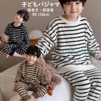 子どもパジャマ 男の子 冬 おしゃれ あったか ふわふわ もこもこ 子どもルームウエア ベビー キッズ 長袖 ボーダー柄 可愛い ゆったり 裏起毛 上下