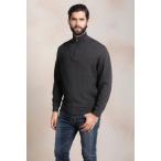 KUNA (クーナ) セーター メンズ ブランド ハーフジップ ニット 長袖 ベビーアルパカ100% ALBERT チャコールグレー Mサイズ