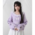ニット セーター Vネックリボンレースビジューハートケーブルニット レディース