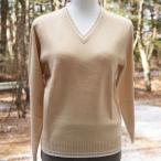 贅沢で希少なベビーカシミヤ100% レディースVネックセーター キャメル色 Mサイズ 【着丈:約59cm】