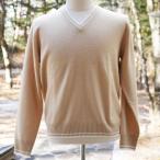 贅沢で希少なベビーカシミヤ100% メンズVネックセーター キャメル色 Lサイズ 【着丈:約64cm】