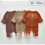 ベビー ロンパース 女の子 男の子 かわいい おしゃれ 秋 秋冬 冬 リブ ニットロンパース 前ボタン ベビーロンパース 長袖セーター ニット 赤ちゃん 服