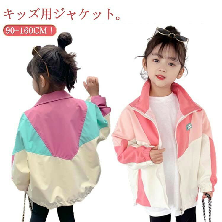 【クーポン利用で10%OFF】ブルゾン マウンテンパーカー 女の子 薄手 子供服 防風 ウィンドブレーカー 春コート 秋 アウター トップス 秋物 配色 ジップア お洒落 切り替え ジャケット 春 キッズ