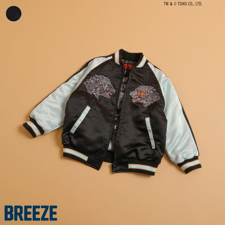 【新作】【ゴジラ】蓄光刺繍リバーシブルスカジャン ▽▽ 光る 男の子 BREEZE ブリーズ 子供服 キッズ ベビー アウター ジャンパー ダウンジャケット ブルゾン 中綿キルト 冬 エフオー FO △△ j502965