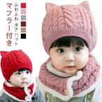 ニット帽 ベビー マフラー 2点セット ニット帽子 猫耳 赤ちゃん ネックウォーマー キッズ ジュニア 子供 男の子 女の子 帽子 マフラー 防寒 防