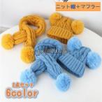 ニット帽 マフラー 2点セット 子供用 キッズ ベビー 男の子 女の子 ポンポン付き 穴あきタイプ 差し込みタイプ おしゃれ 防寒 ぽかぽか キュート