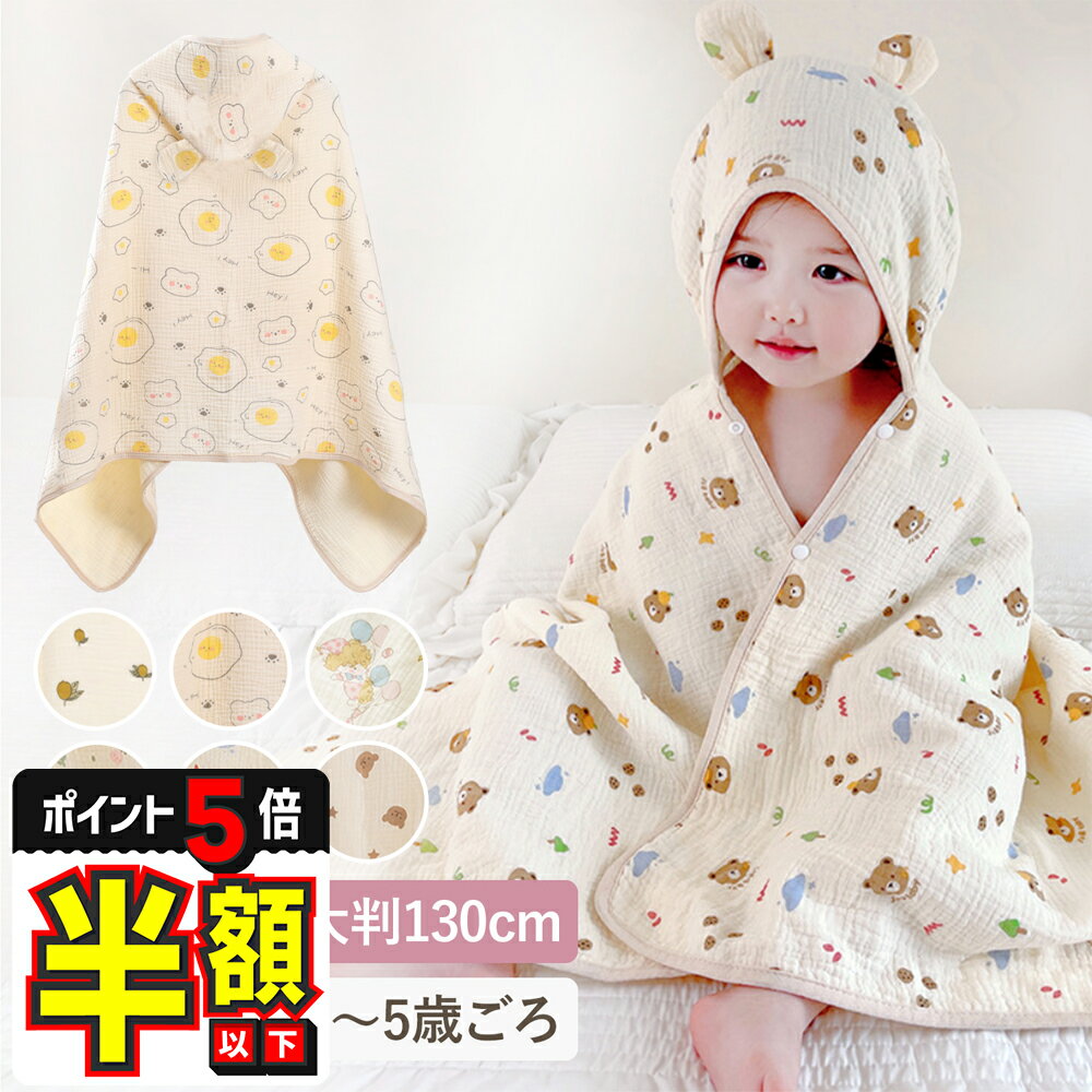 【20%OFFクーポンあり・P5倍】 バスローブ ベビー キッズ バスタオル 大判 ガーゼ フード付き 赤ちゃん ベビータオル ガーゼケット バスポンチョ 着るバスタオル 子供 子ども 保育園 湯上がり お風呂