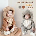 ベビー ロンパース 着ぐるみ フード付き ベビー服 動物 クマ 耳 フード付き くまさん 新生児服 あったか 可愛い カバーオール 男の子 女の子 寝袋 秋 冬