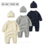 【25日限定10%OFFクーポン】ロンパース 着ぐるみ ベビー ニット ケーブル編み 長袖 赤ちゃん用 ボタン 帽子 キッズ 女の子 男の子 オーバーオール 幼児 子供服 可愛い カバーオール 可愛い 普段着 春 秋 冬 お出かけ 通園 脱着簡単 ユニセックス 59/66/73/80/90