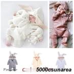 ロンパース ベビー服 女の子 男の子 カバーオール 長袖 うさぎ 耳 秋冬 前開き 赤ちゃん 綿 コットン 可愛い 着ぐるみ うさみみ 子供服 出産祝い プレゼント