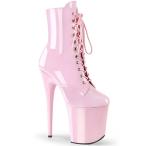 Pleaser プリーザー 20cm ヒール ショートブーツ 厚底 ベビーピンク エナメル 靴 編み上げ レースアップ 小さいサイズ 大きいサイズ ジッパー ハイヒール 取寄
