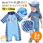 ベビー 水着 キッズ 男の子 子供水着 2点セット ロンパース オールインワン ラッシュガード 長袖 フィットネス スイムウェア 日焼け防止帽子付け