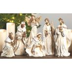 イエスキリストご降誕 ネィティビティ 置物 クリーム&ゴールド 聖なる家族、3人の博士と天使 ♪6点セット♪