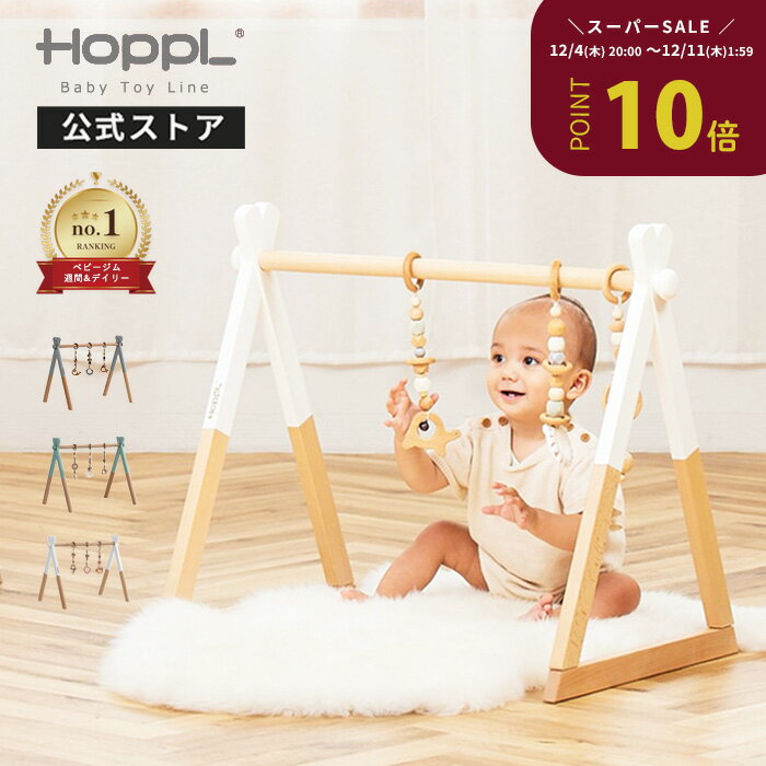 ベビージム 木製 赤ちゃん トイ HOPPL ホップル 北欧 安心 ギフト 0歳 室内 折りたたみ 床置き プレイジム かわいい 木のおもちゃ おしゃれ 出産祝い