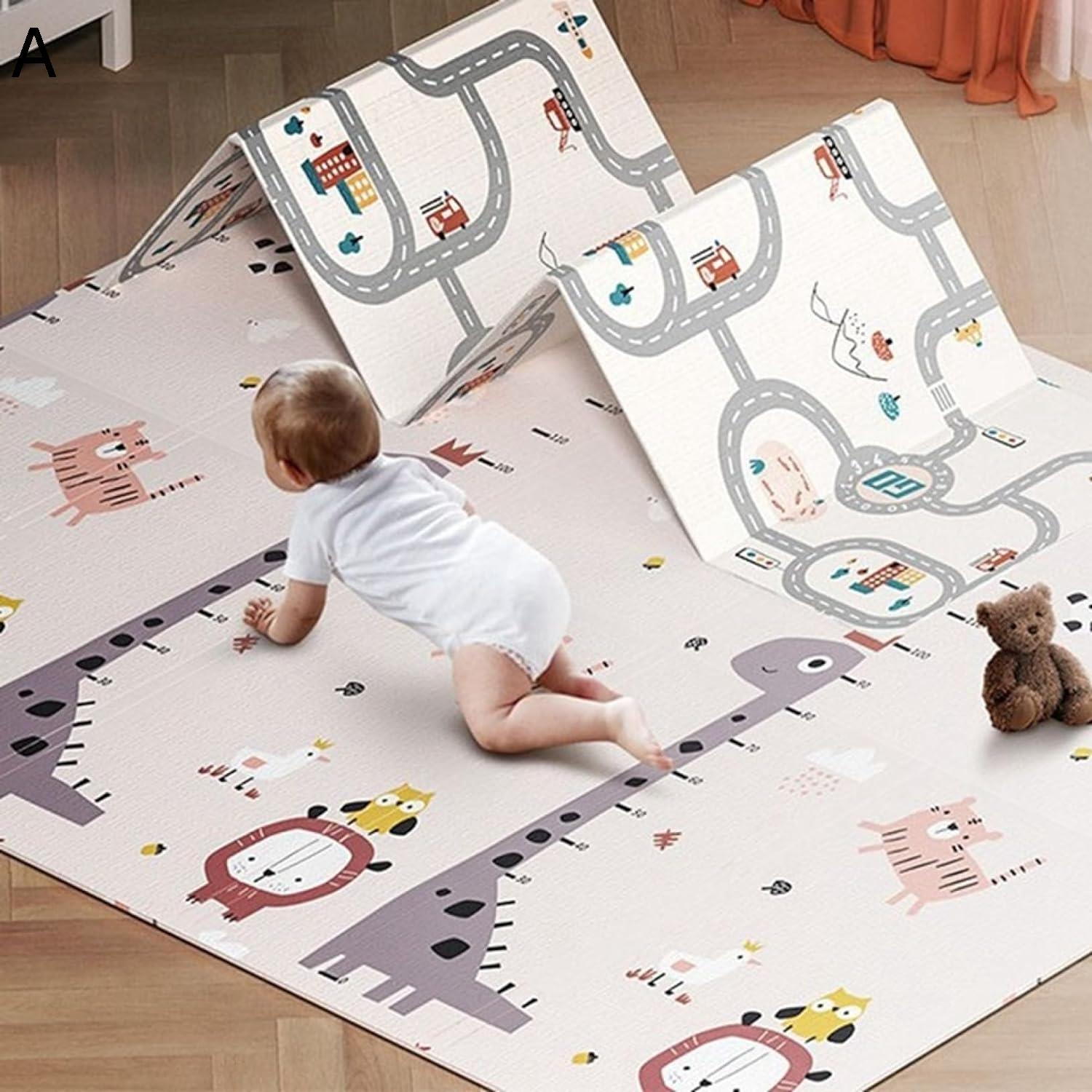 【20%OFFクーポン〜】折り畳みカーペット プレイマット リバーシブル ベビーマット 1.6M*1.8M*1.5cm いしけり 身長測定 道路柄 アニマル おもちゃ 多機能 折りたたみ 転倒防止 防滑 両面使用 撥水 知育玩具 軽量 ベビージム 収納簡単