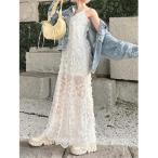 ワンピース レース重ねパールリボンお嬢様ワンピース