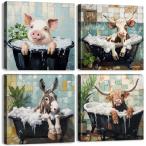 【並行輸入品】 おもしろいキッズバスルーム装飾 かわいい動物 ウォールアート ファームハウス ベビールーム装飾 抽象的な豚 牛 馬 キャンバスプリント 写真 野