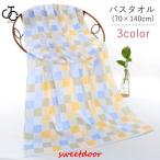 バスタオル ガーゼタオル ベビー キッズ 男の子 女の子 生活雑貨 バス雑貨 70 140cm 総柄 チェック ピンク グリーン ブルー かわいい