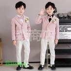 フォーマルスーツ 男の子 スーツセット おしゃれ ピンク 白 4点セット 入学式 子供服 発表会 結婚式 卒業式 キッズ ブレザー パンツ