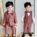 フォーマルスーツ 男の子 スーツセット キッズ チェック柄 4点セット 入学式 子供服 発表会 結婚式 卒業式 ブレザー ベスト パンツ