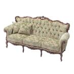 ソファー ソファ 3人掛け 三人掛け 高級 おしゃれ リビング アンティーク ハイバック 布 肘付き グリーン 緑