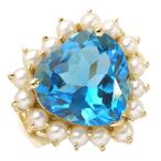 送料無料 本物 ポンテヴェキオ ブルートパーズデザインリング 指輪 K18YGイエローゴールド ベビーパール 12号 仕上げ済み ハートデザイン