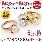 ベビーリング アコヤ真珠 あこや真珠 アコヤパール アレルギー対応 レディース メンズ 指輪 サージカル ステンレス 刻印 貝 本パール 6月 誕生石 3mm