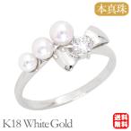 パール リング 18金 k18 18k ホワイトゴールド 真珠リング ベビーパール リボンモチーフ リボンリング 真珠 アコヤ ダイヤモンド 送料無料 レディース pu